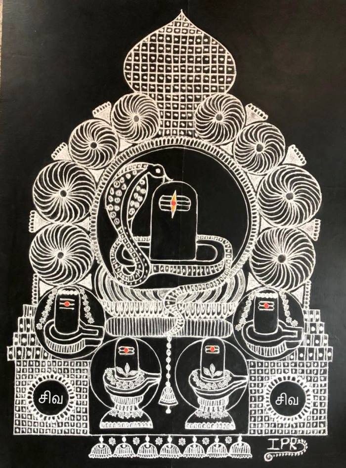 Enjoy the beauty of Nagabharana depicted in the Rangoli to become Shivam.